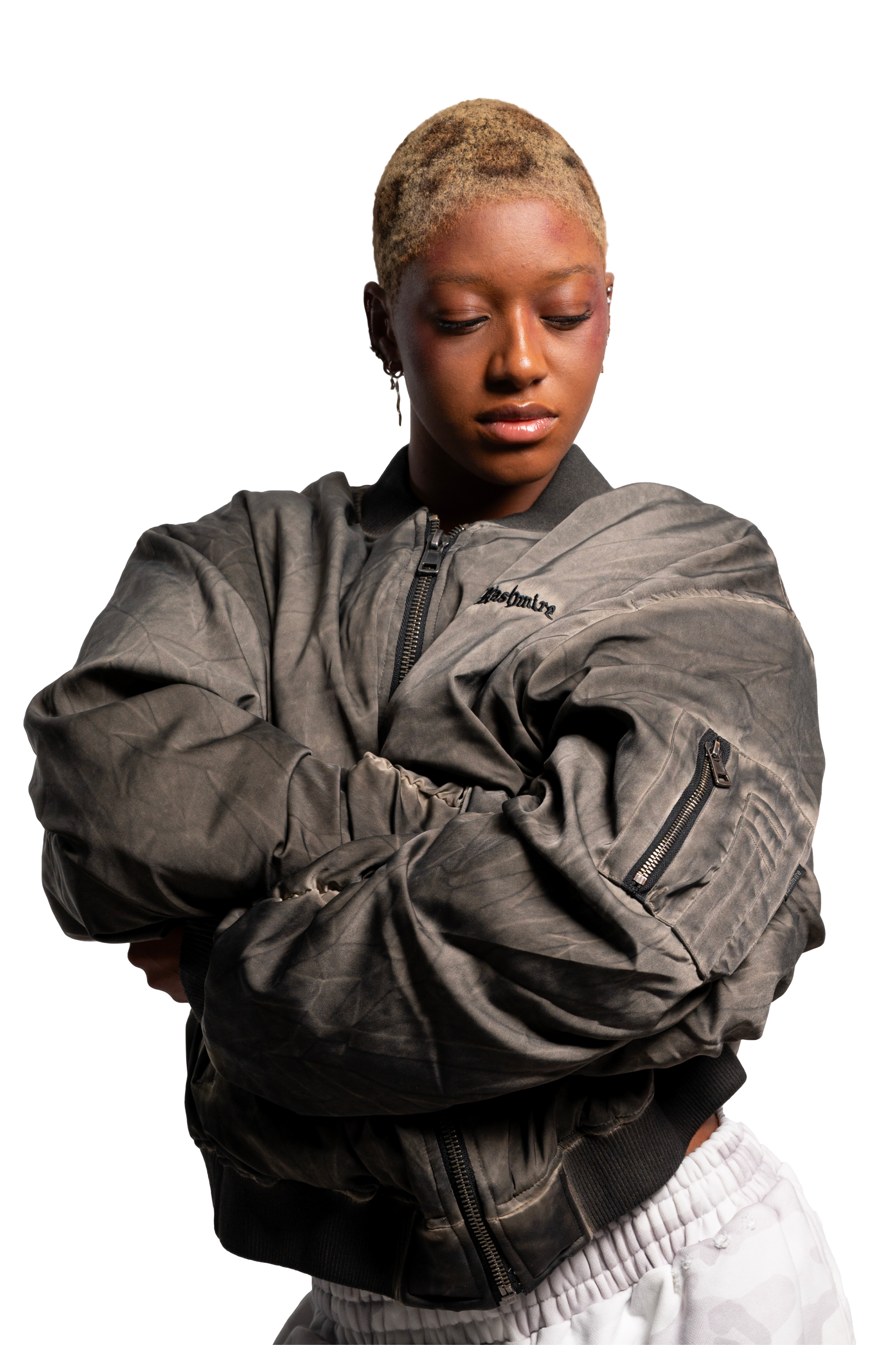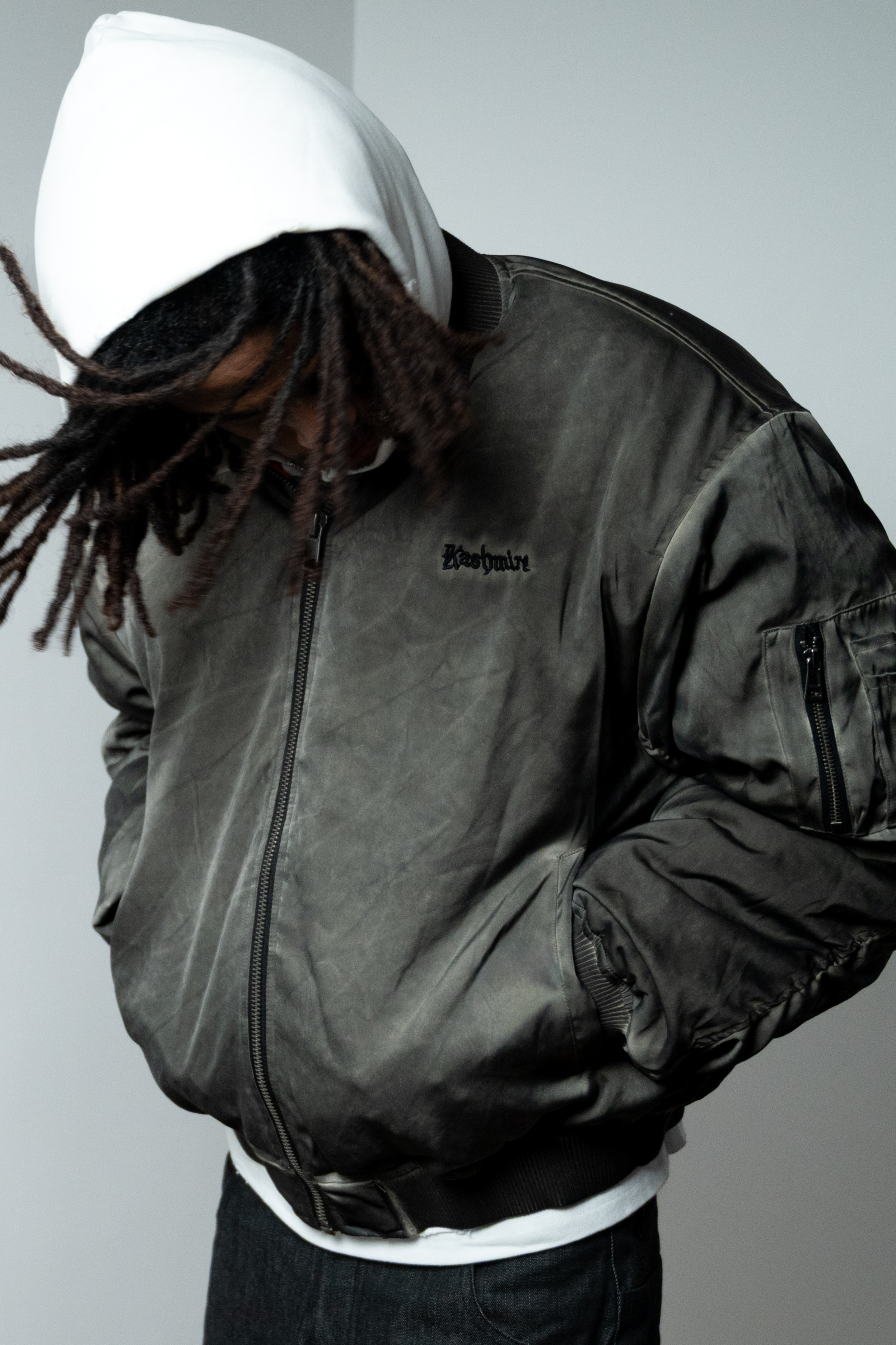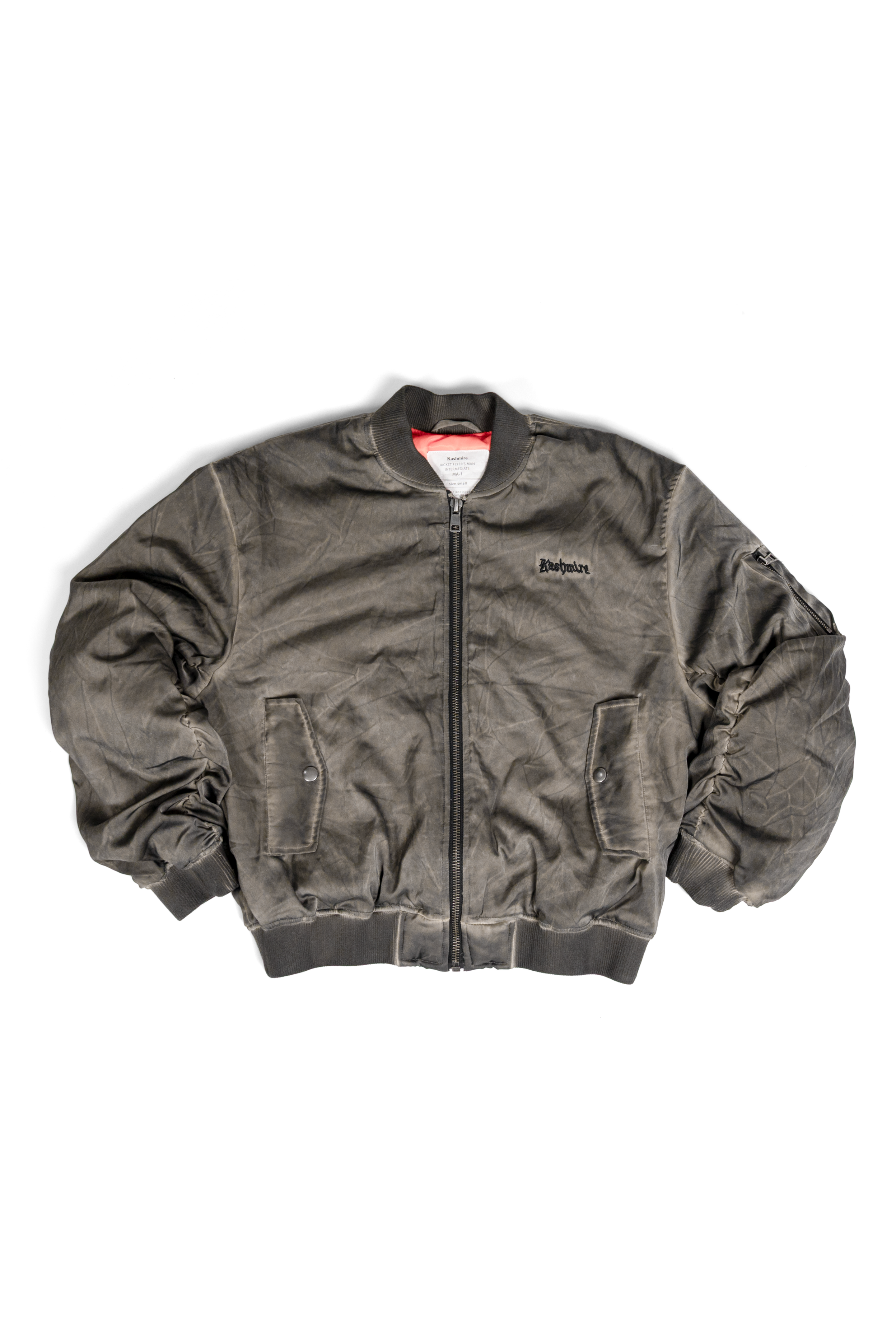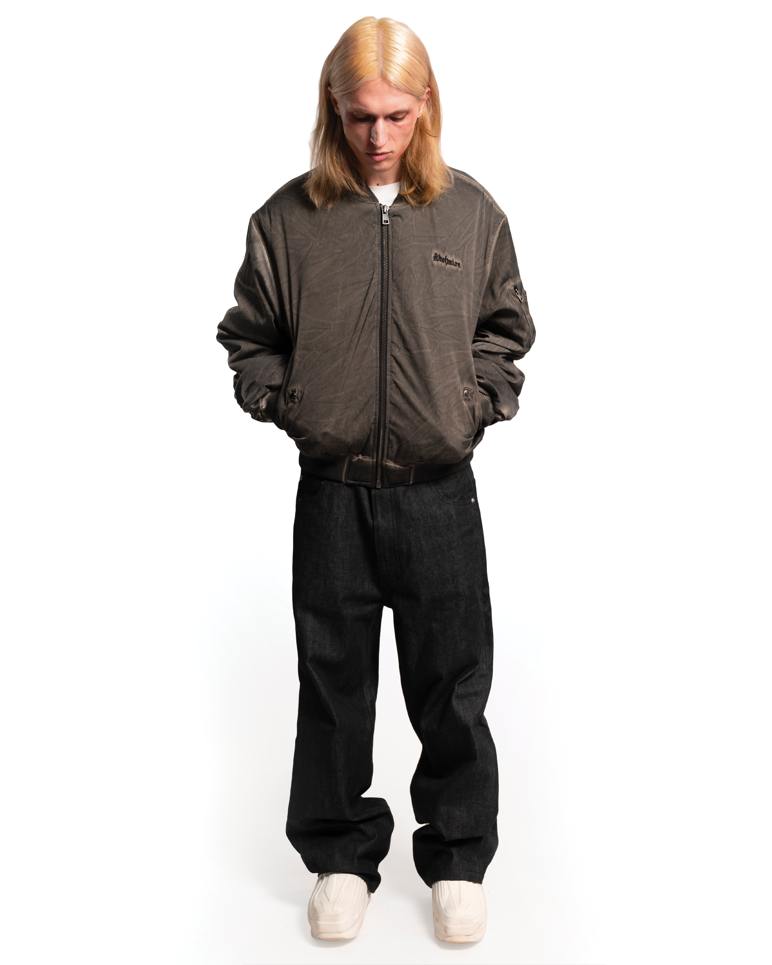 Hand dyed Bomber MA-1 jacket with a front and back black embroidery