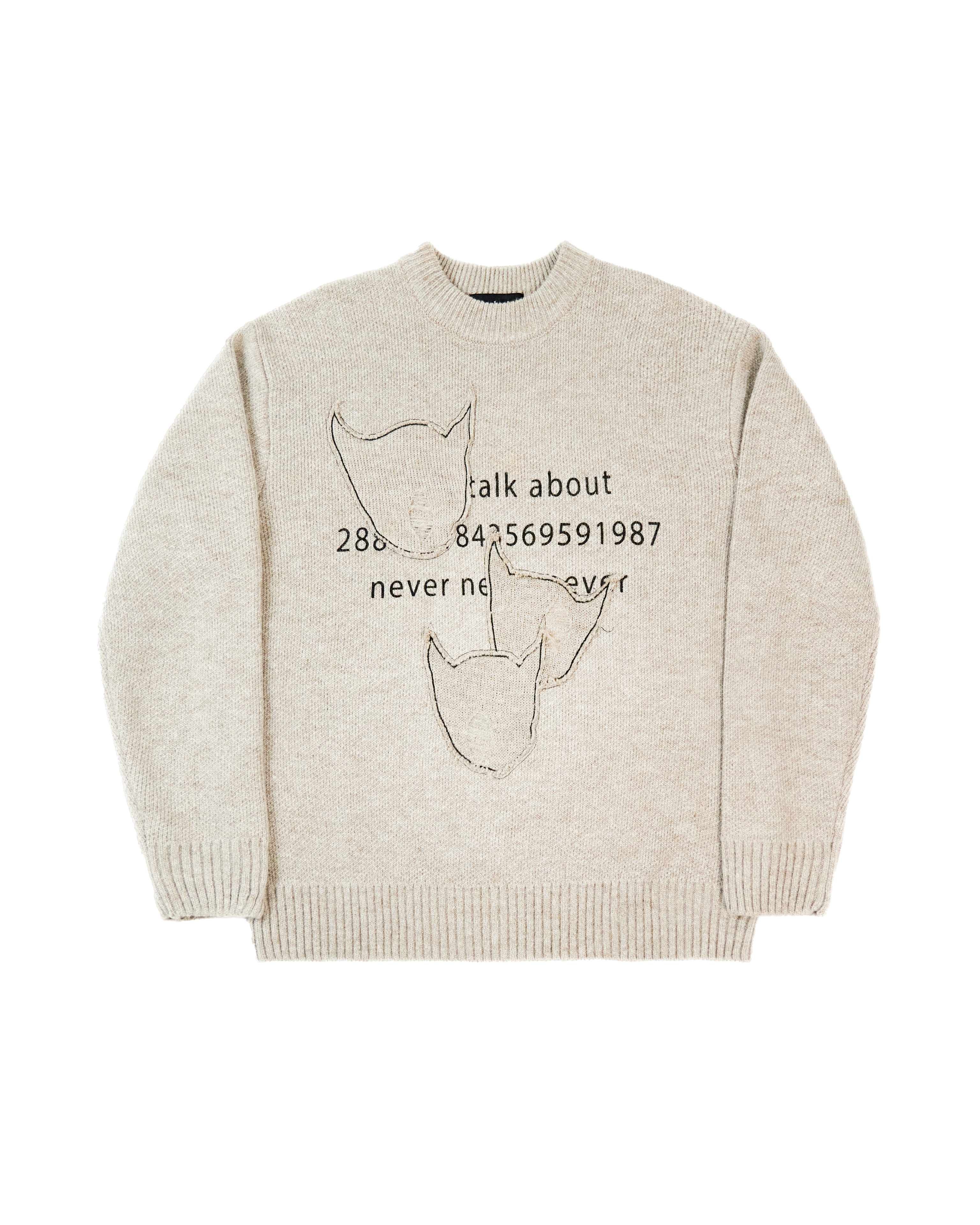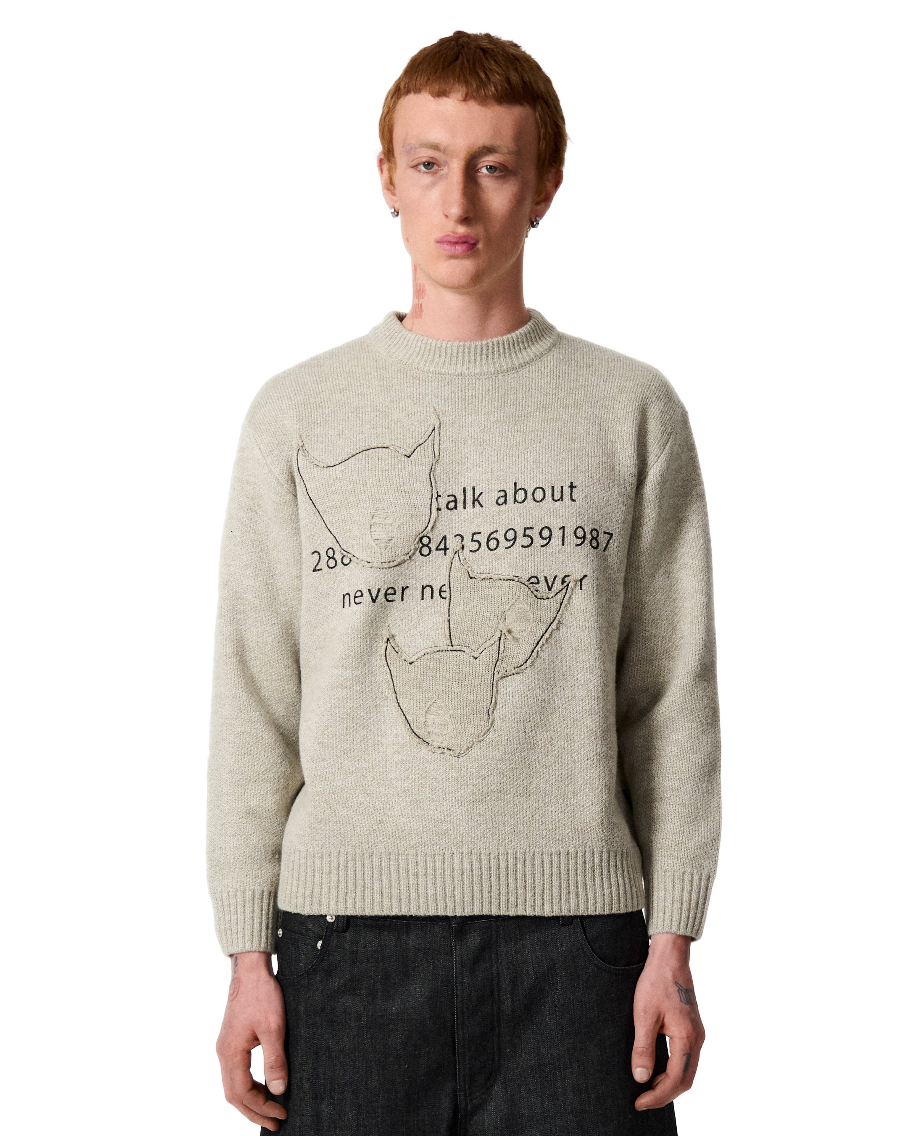 Pull en mohair beige sérigraphié et 3 patchs brodés avec effet usé