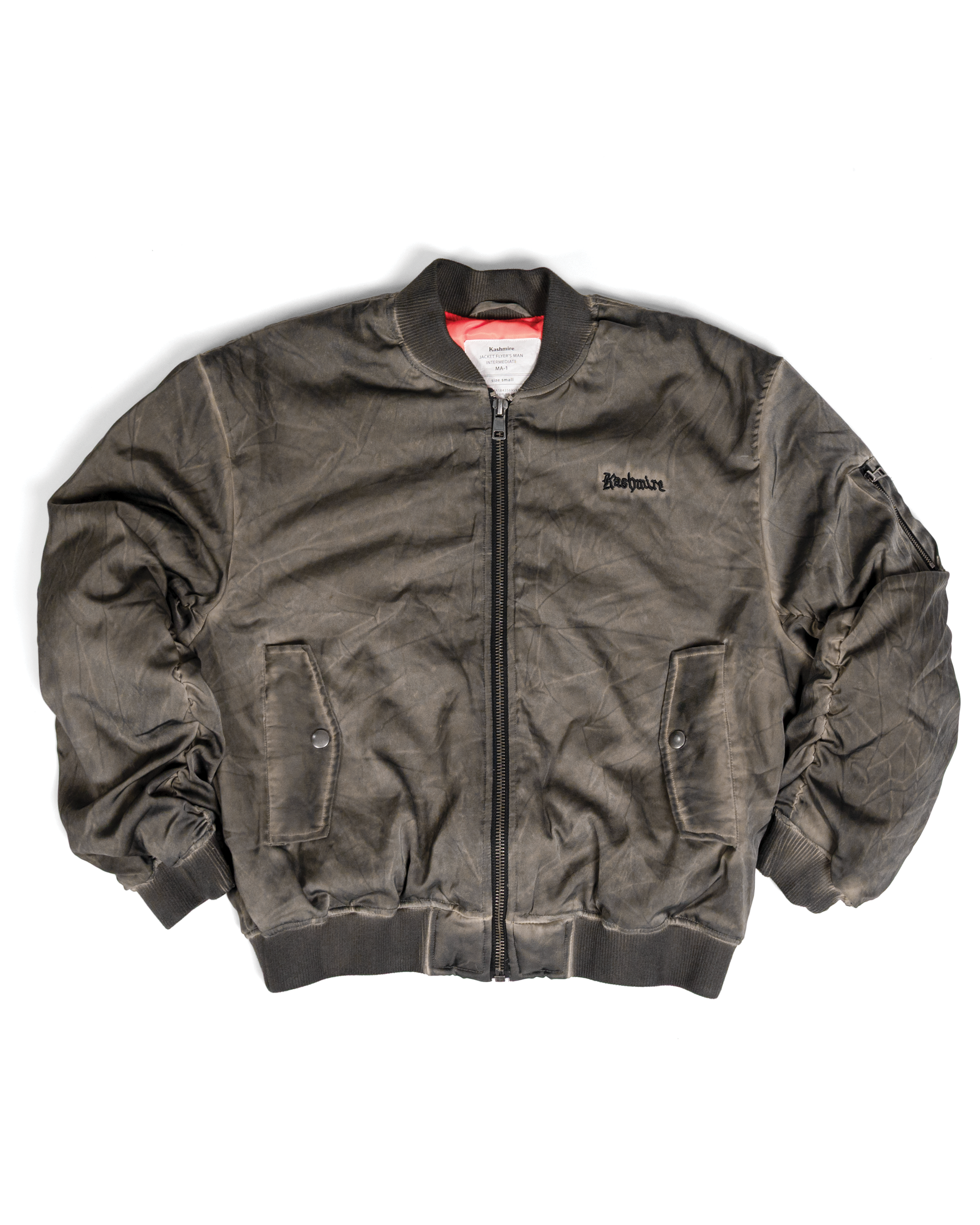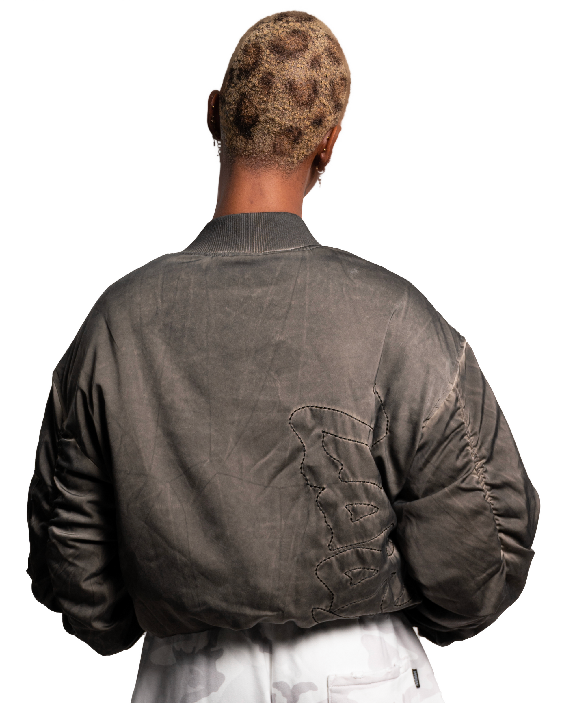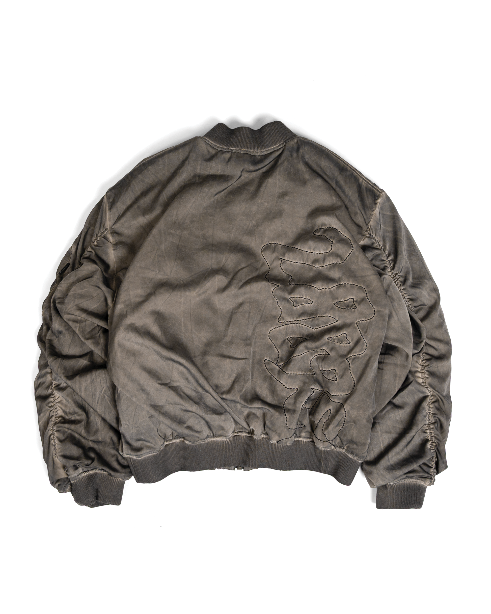 Hand dyed Bomber MA-1 jacket with a front and back black embroidery